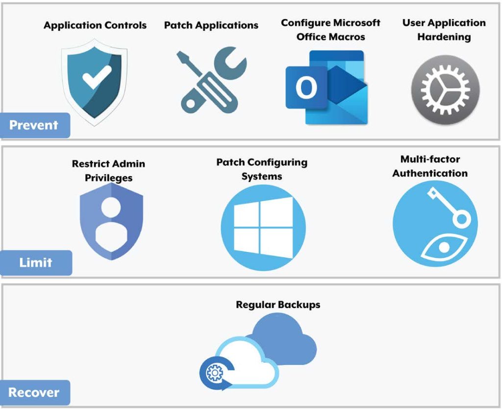 The Essential Eight are key cybersecurity strategies recommended by the ACSC: